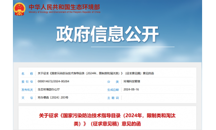 生態(tài)環(huán)境部發(fā)布2項(xiàng)國(guó)家生態(tài)環(huán)境標(biāo)準(zhǔn)征求意見(jiàn)稿2024-08-29
